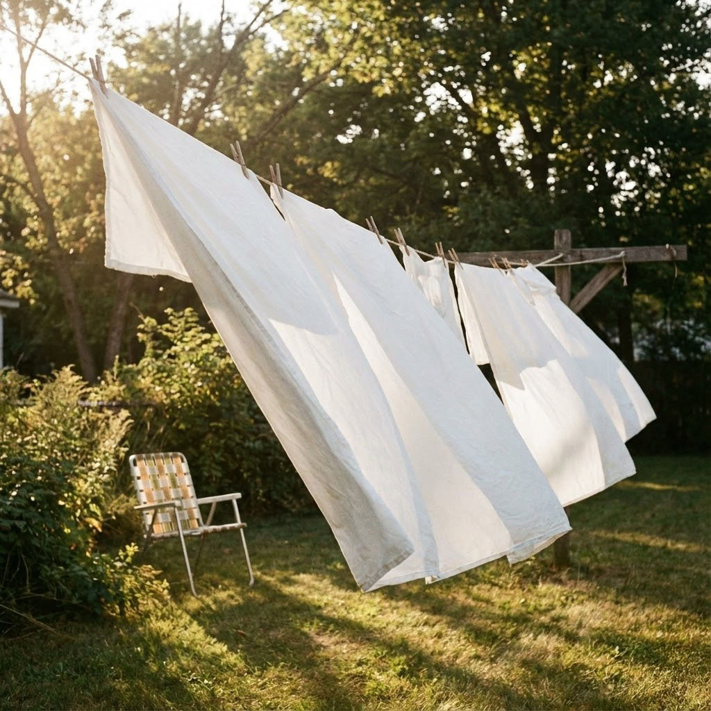 The stiff, crisp feel of sun-dried sheets and that specific “outdoor” smell weren’t luxuries back then. They were just the standard way laundry was done.