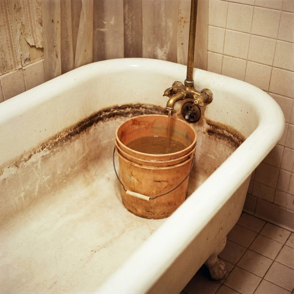 In dry summers, bathwater didn’t always go down the drain. It was often bucketed out to the tomato plants.