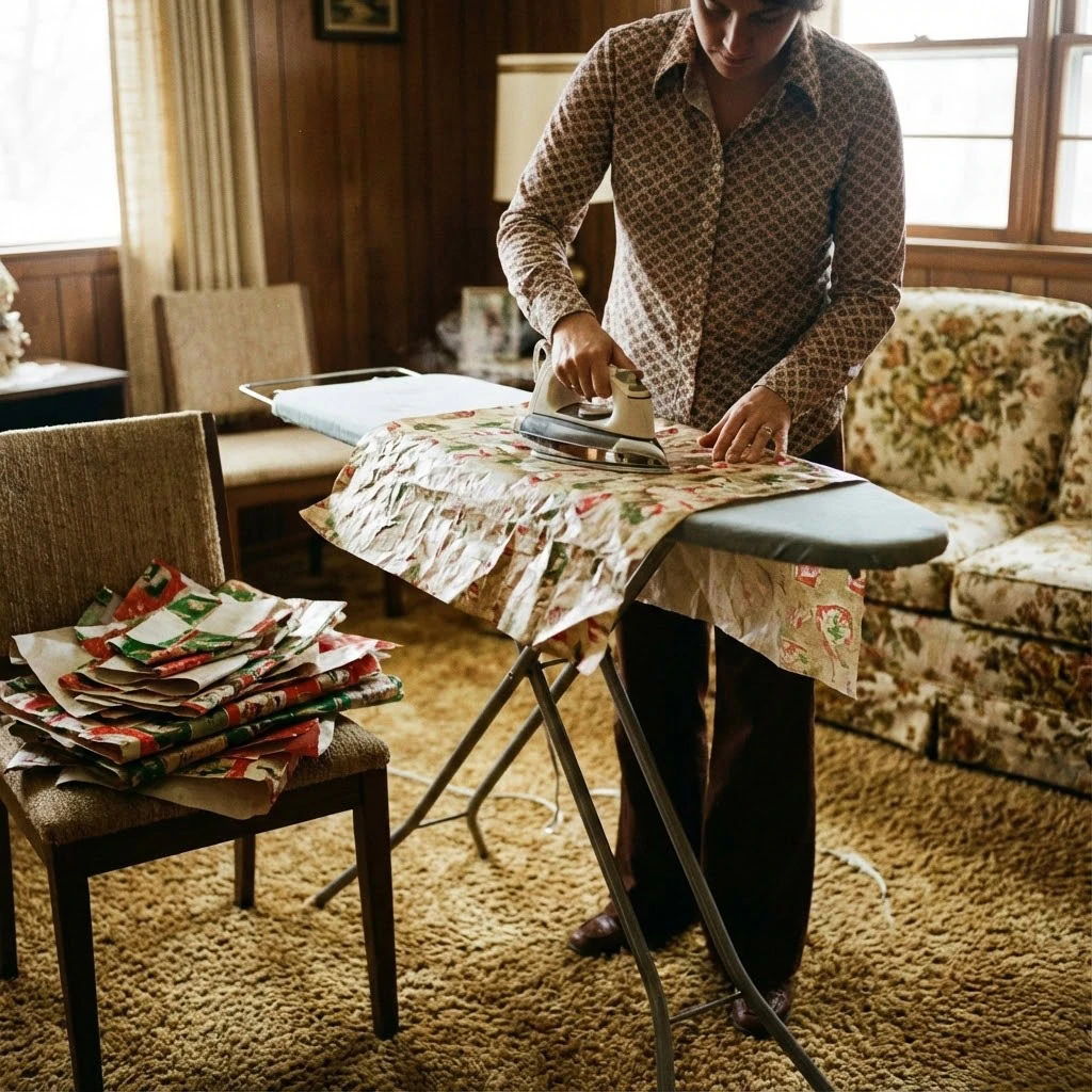 9. Ironing the Gift Wrap