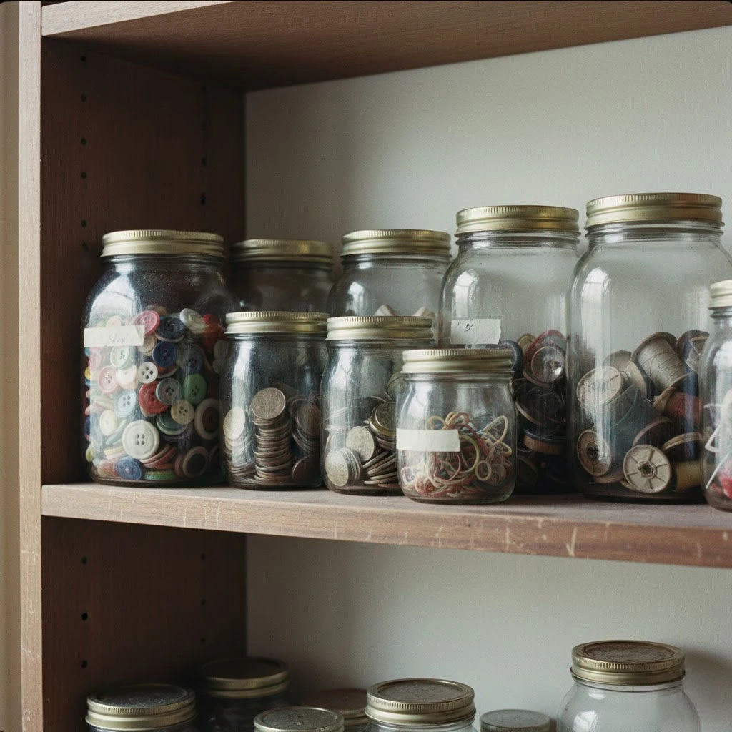 Every garage had a shelf of jars holding nails, and every fridge had a jar holding soup.