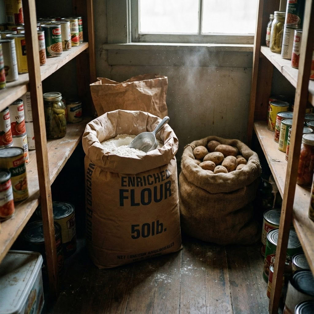 The pantry was full of ingredients, not meals. Flour, sugar, lard, and spices.