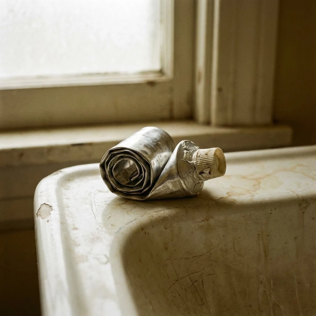 You used the edge of the sink counter to flatten the tube and push every last milligram of paste to the top.